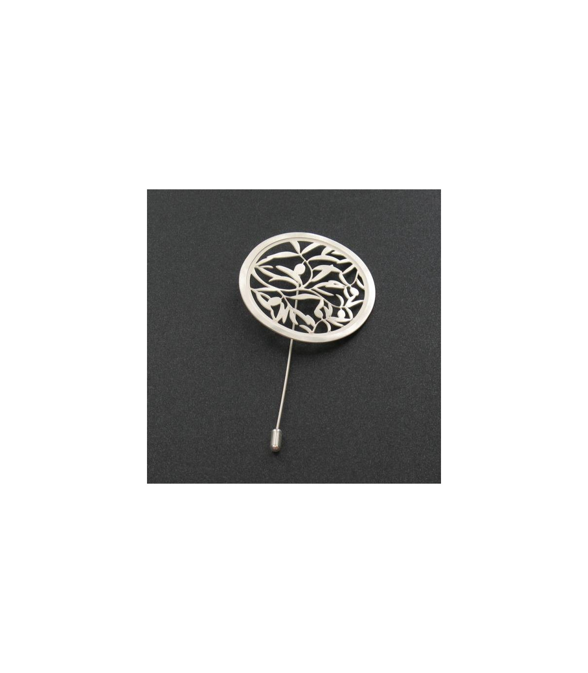 Broche de latón con acabado con baño de plata y laca.