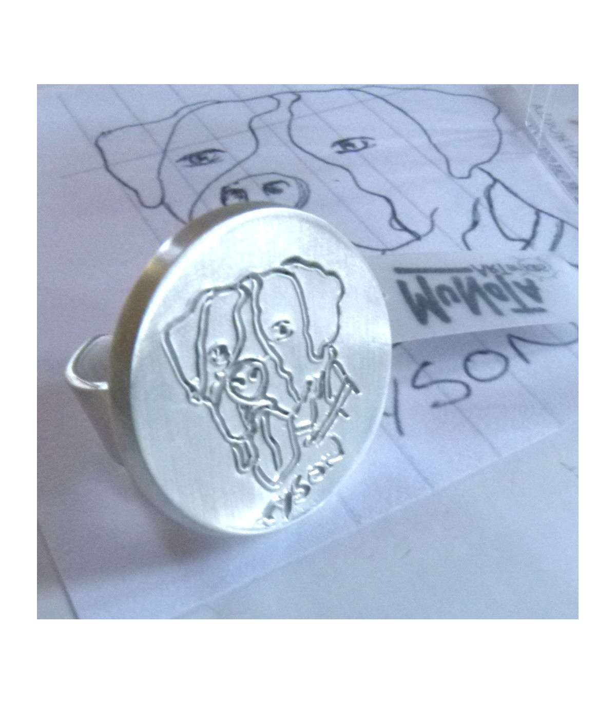 Anillo redondo inspirado en las formas geométricas. Un dibujo de tus hijos o alumnos grabado en una joya realizada integramente en plata de Ley 925.