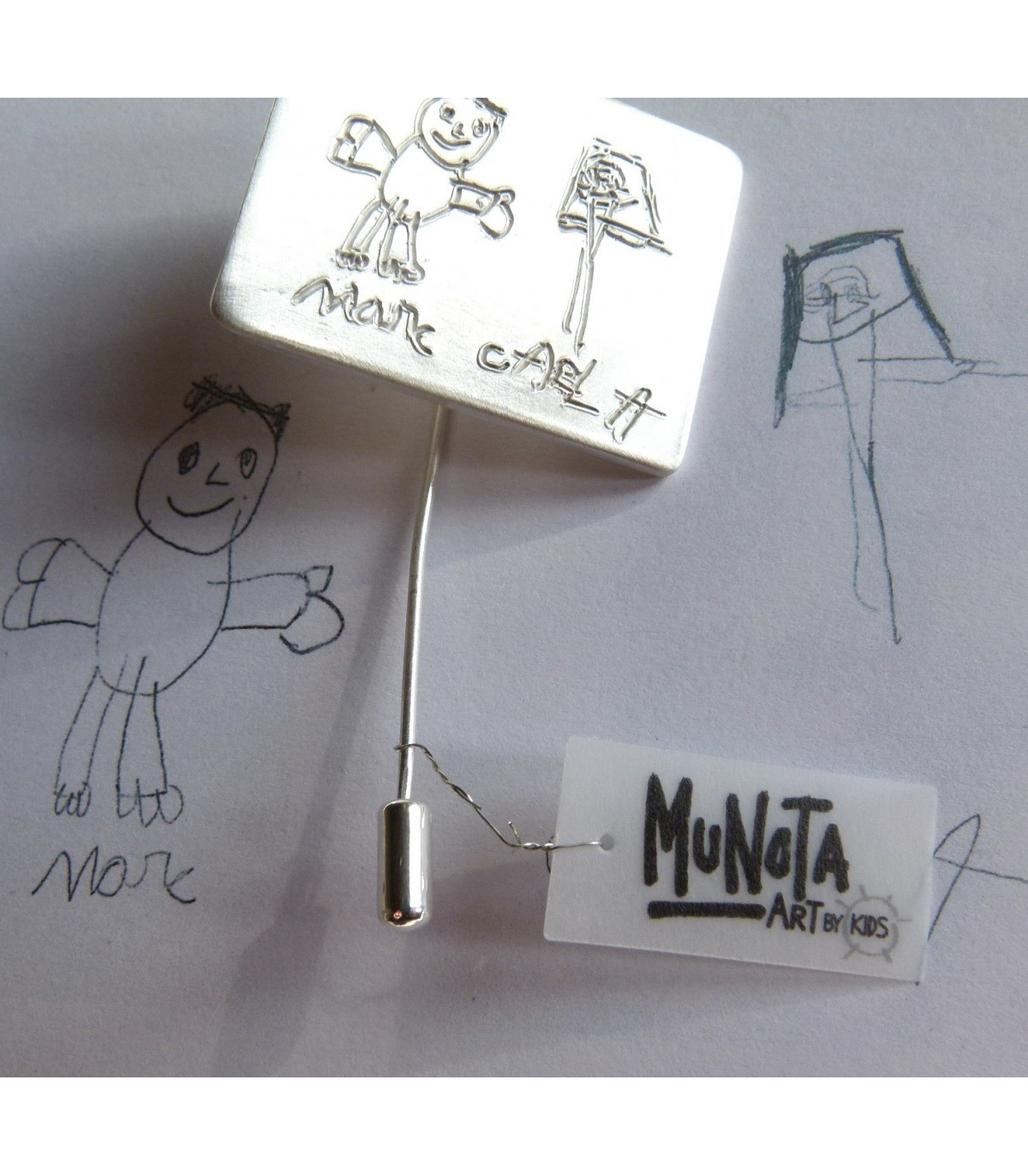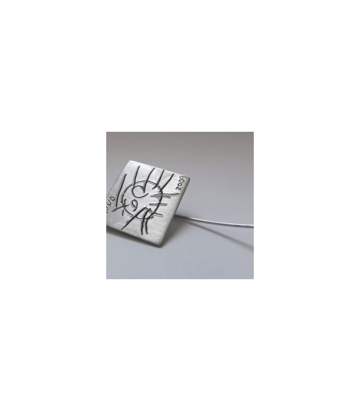 Broche cuadrado inspirado en las formas geométricas. Un dibujo de tus hijos o alumnos grabado en una joya realizada integramente en plata de Ley 925.