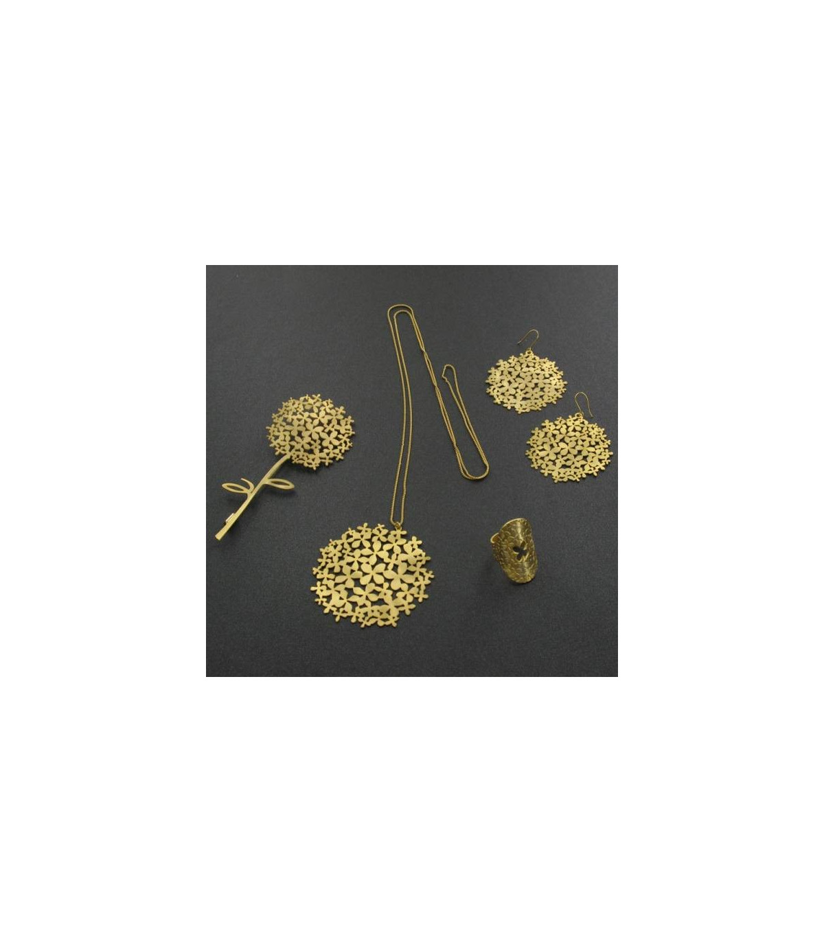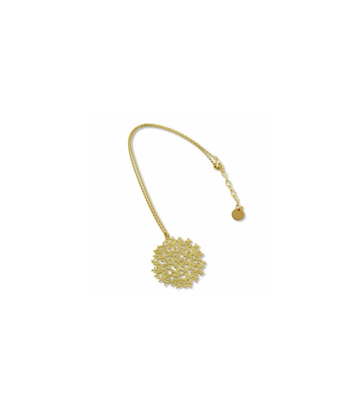 Colgante con motivos florales y acabado con fino baño de oro y lacado.