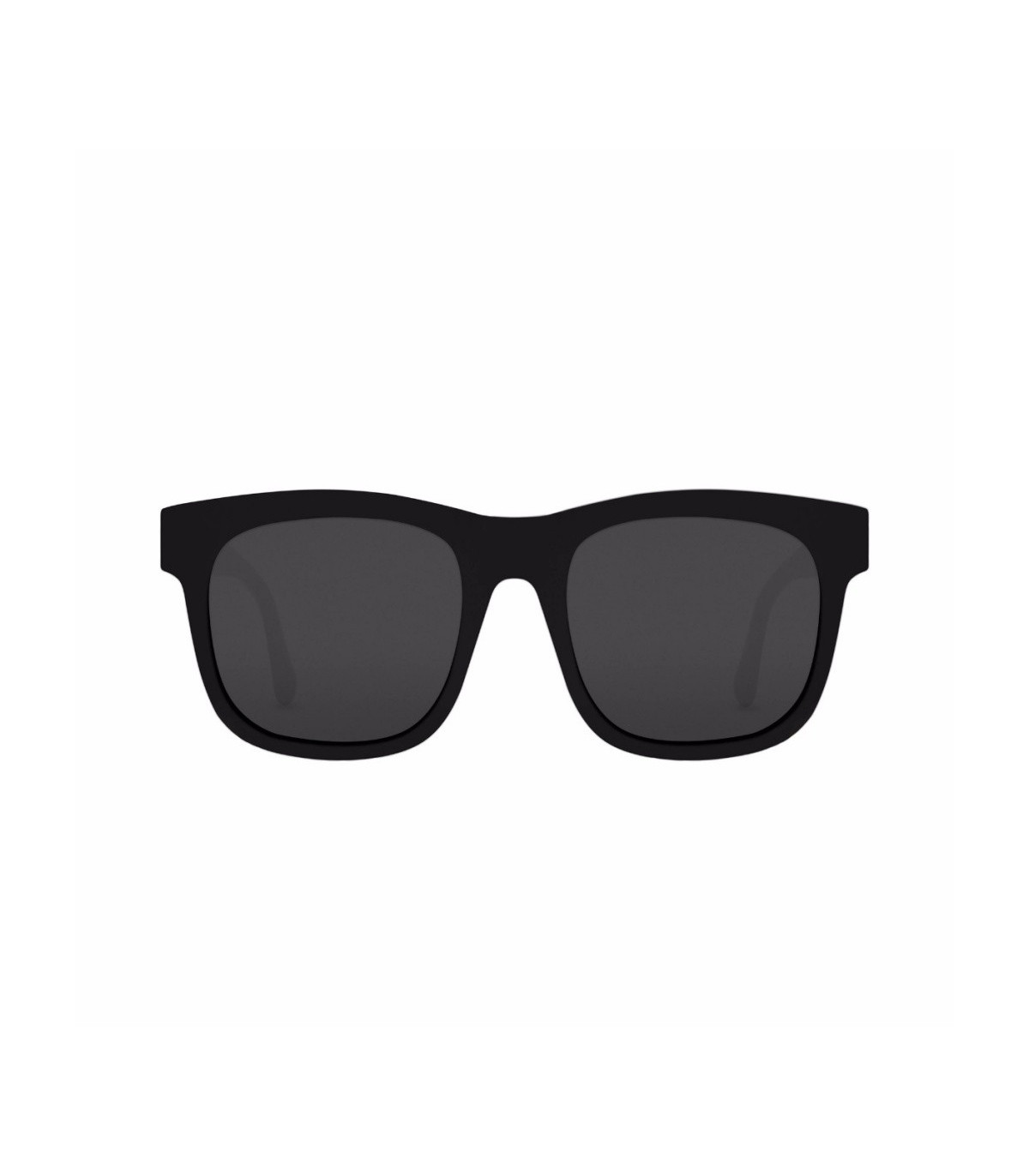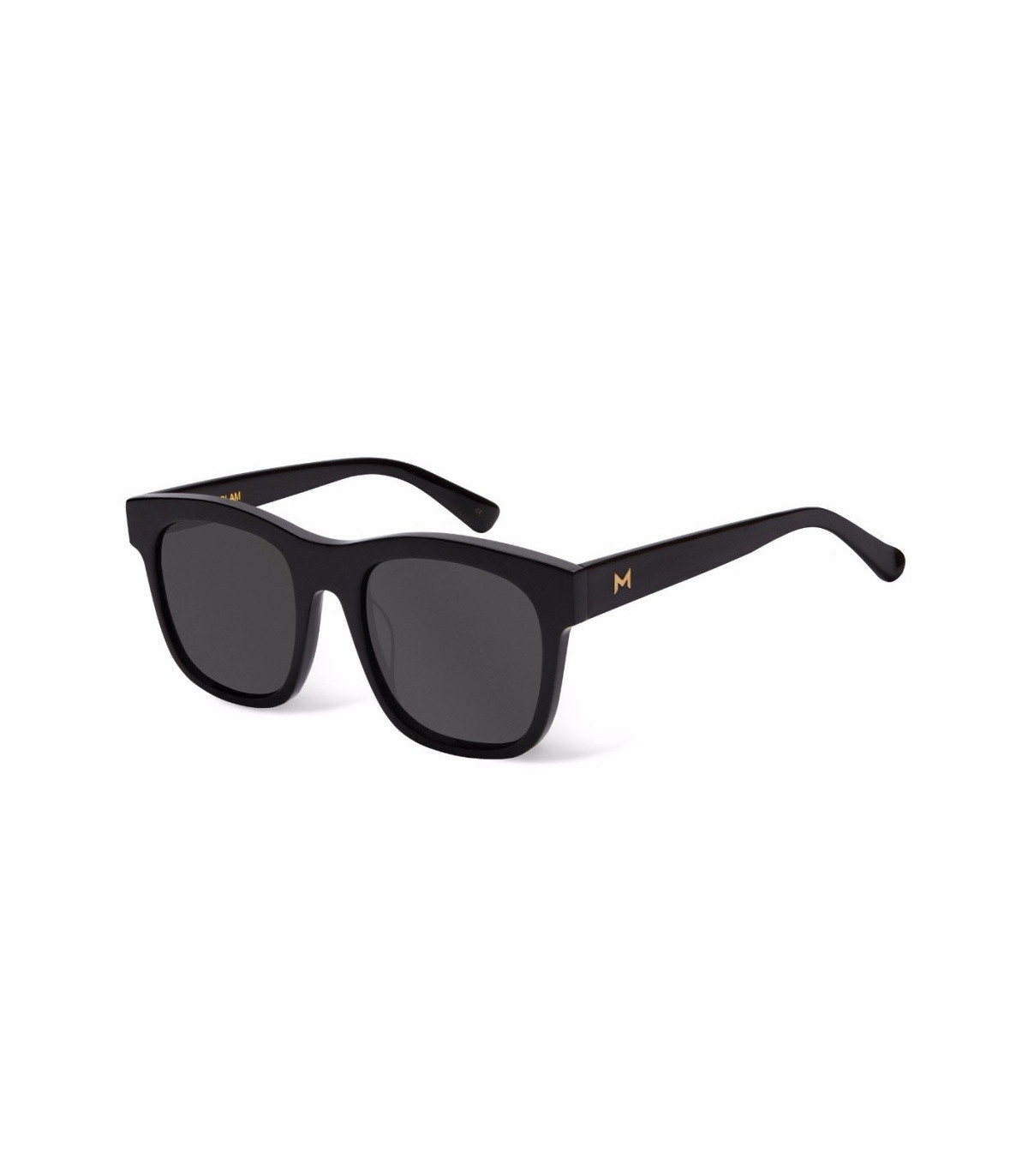 Gafas de sol con montura de acetato de alta calidad. monocolor en negro. Lentes polarizadas con protección UV400 con cristal oscuro que incluyen una funda protectora de piel y gamuza limpiadora.