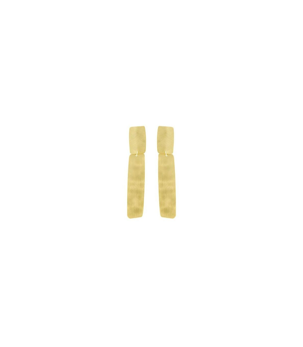 Pendientes en forma rectangular hechos a base de latón y chapados en oro. La Firma que los ha creado se ha inspirado en la Filososfía oriental del siglo VI. Darán a tu look un air sofisticado y moderno. Palillos en plata de ley para evitar alergias y bañados en oro.