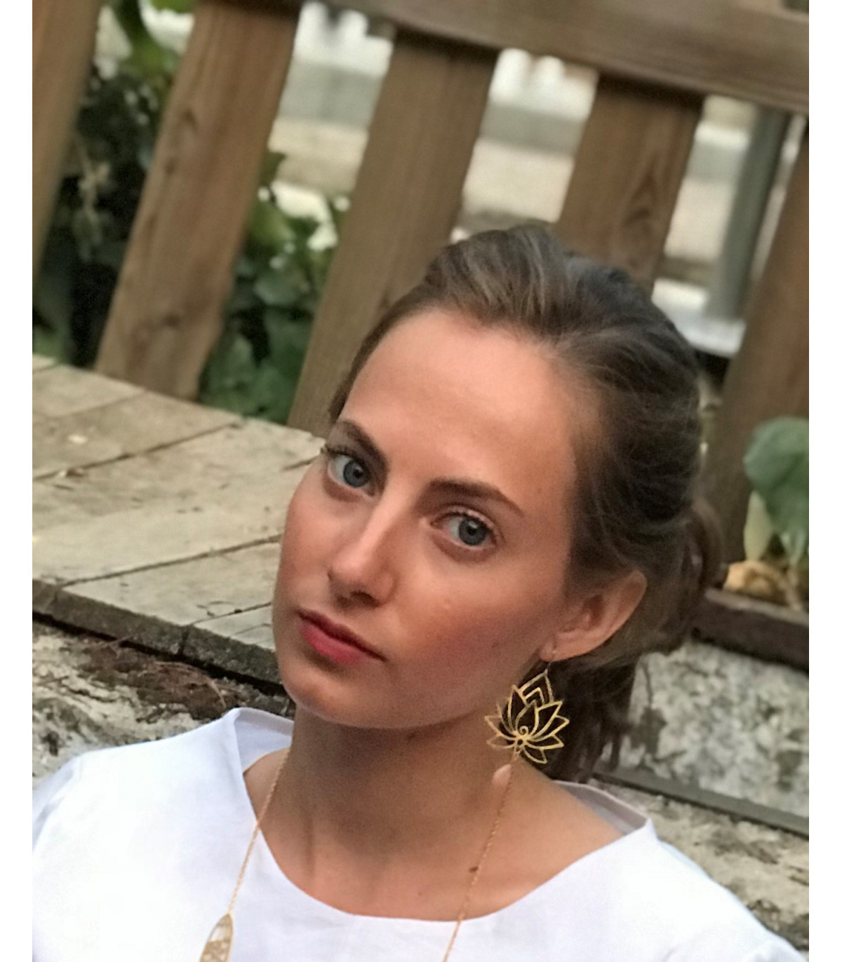 Pendientes con baño de oro y pequeñas piedras de ambar. Diseño fino que dan al look un aire muy elegante. El gancho es de plata de ley con baño de oro para evitar las alergias.