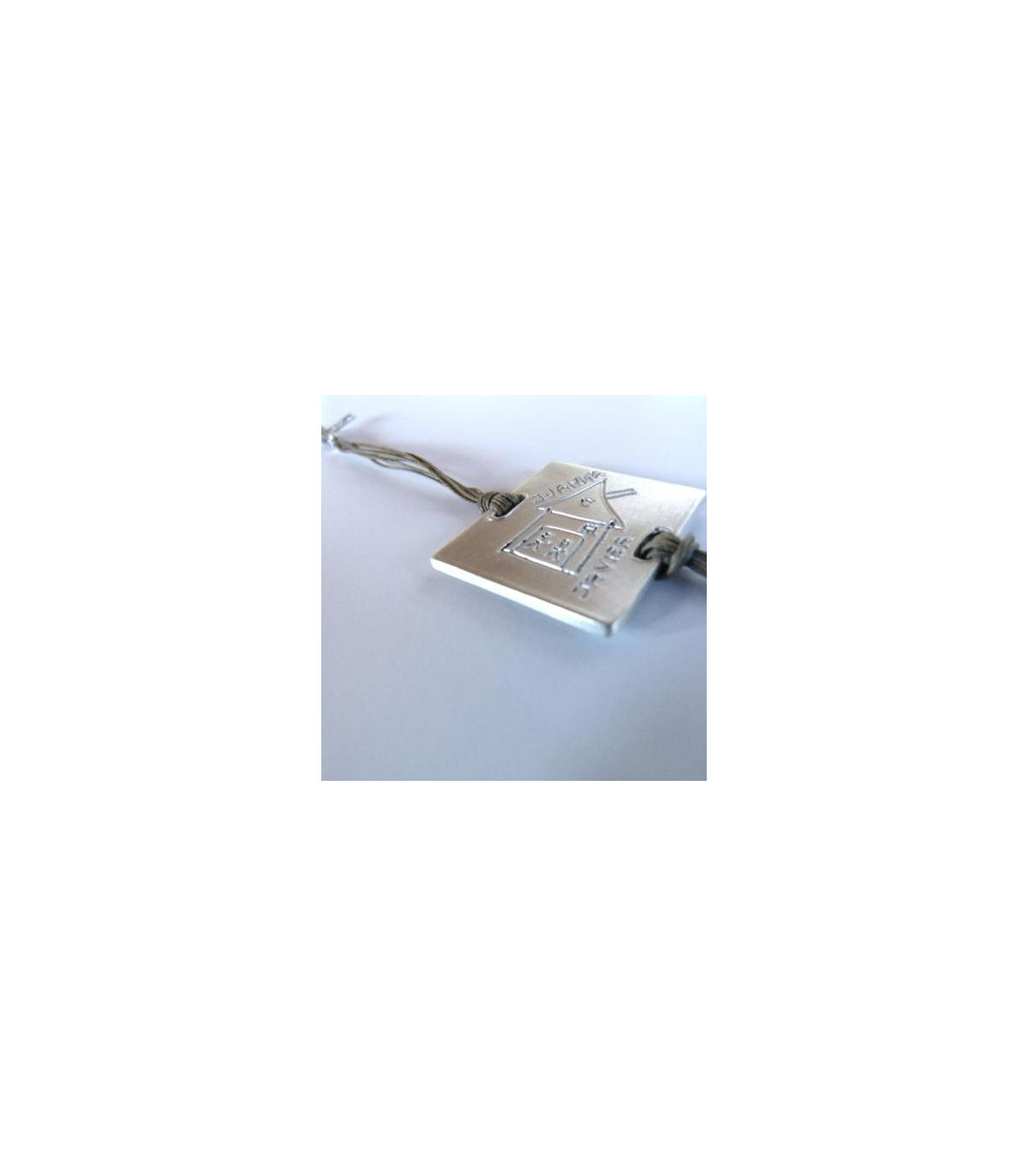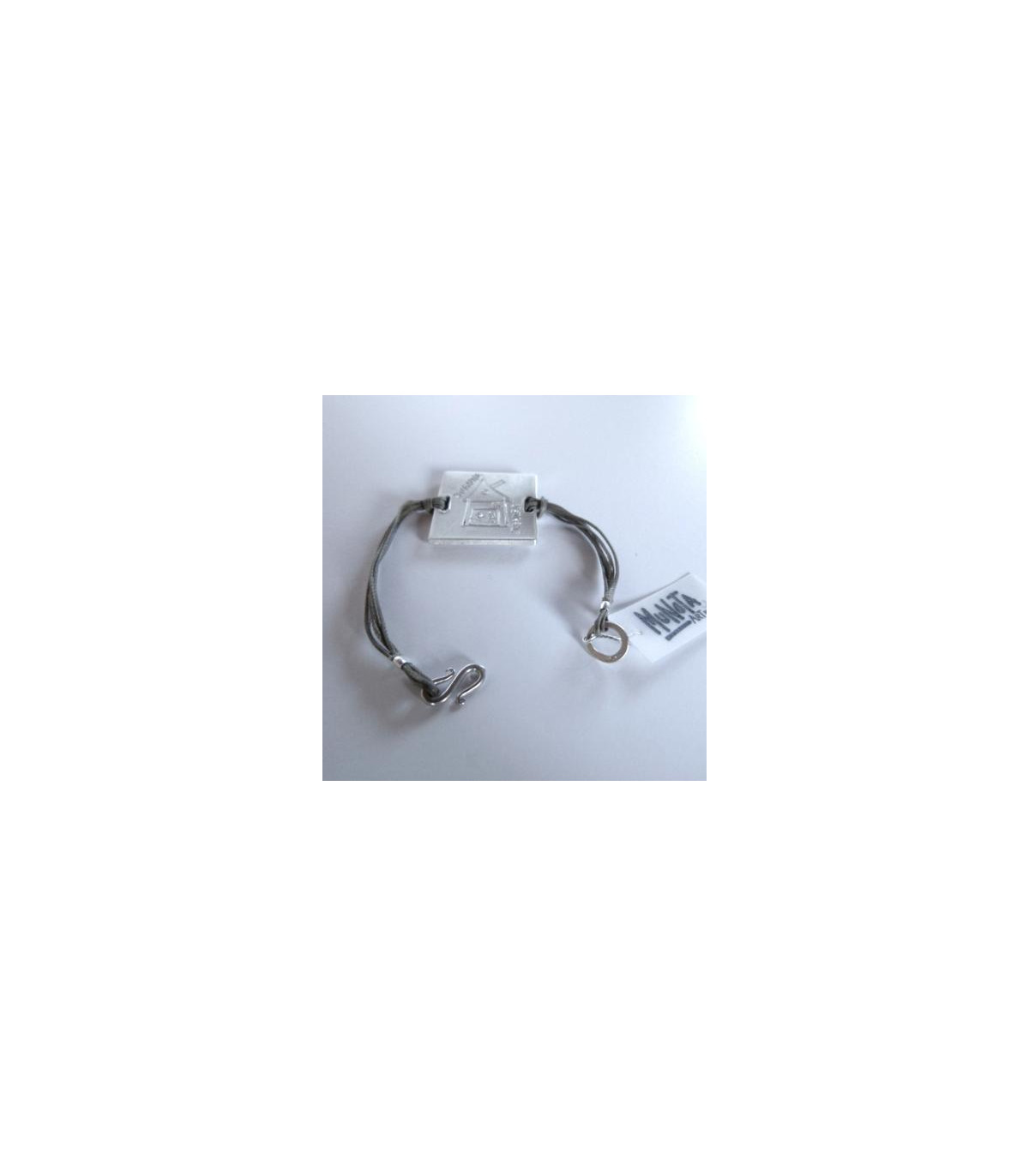 Pulsera cuadrada con brazalete en cordón inspirada en las formas geométricas. Un dibujo de tus hijos o alumnos grabado en una joya realizada integramente en plata de Ley 925.