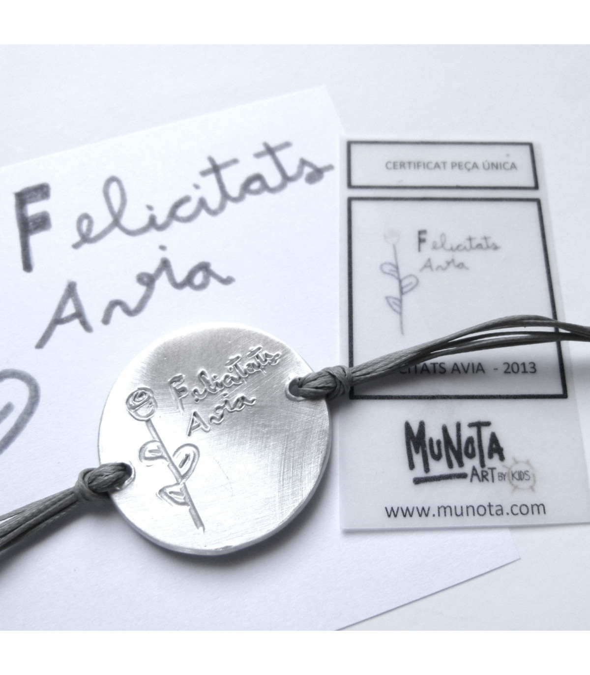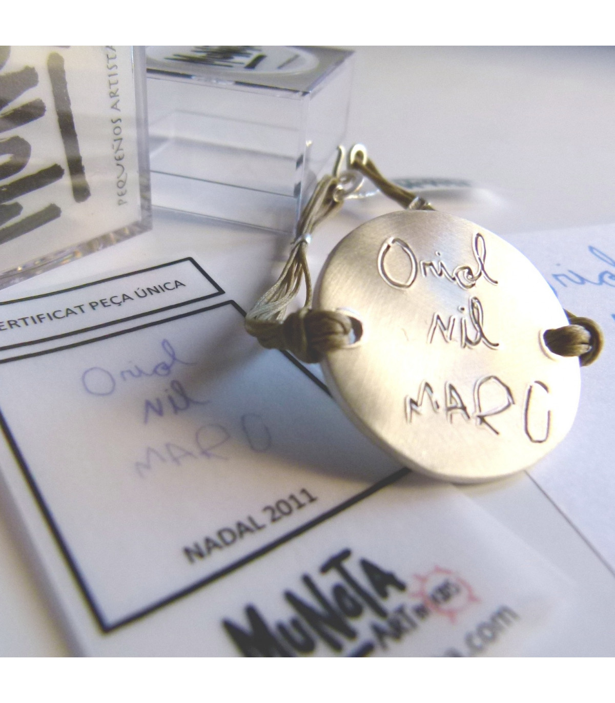 Pulsera de plata 925 con tu dibujo personalizado, pieza única trabajada artesanalmente. Acabado con varios cueros encerados con cierre de plata 925. Grabado con el sello de autenticidad de MUNOTA y plata 925. Dos mediadas de 16 cm abierta o 18 cm para muñecas anchas.